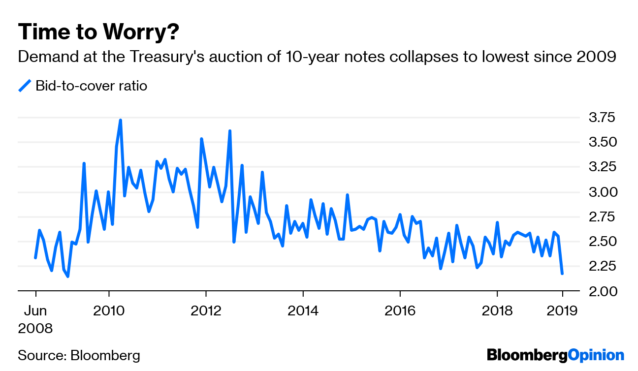 Demand at the Treasury’s auction of 10-year notes collapses to lowest since 2009