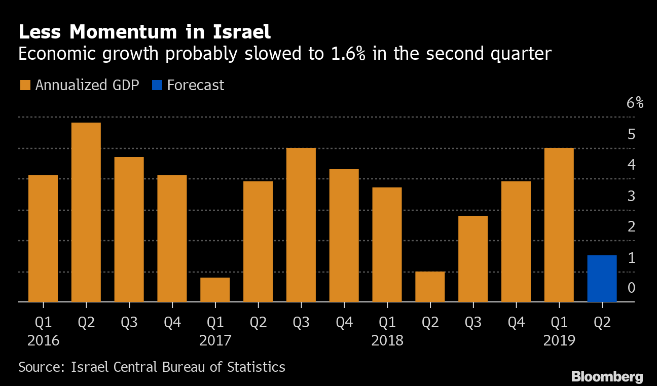 Israel may announce on Sunday that annual economic growth slowed sharply in the second quarter; the central bank looks set to reverse course later this month on plans to raise interest rates. Egypt, the Middle East’s fastest-growing economy, will probably join the global easing parade on Thursday, when it’s expected to cut its deposit rate by 100 basis points to 14.75%.