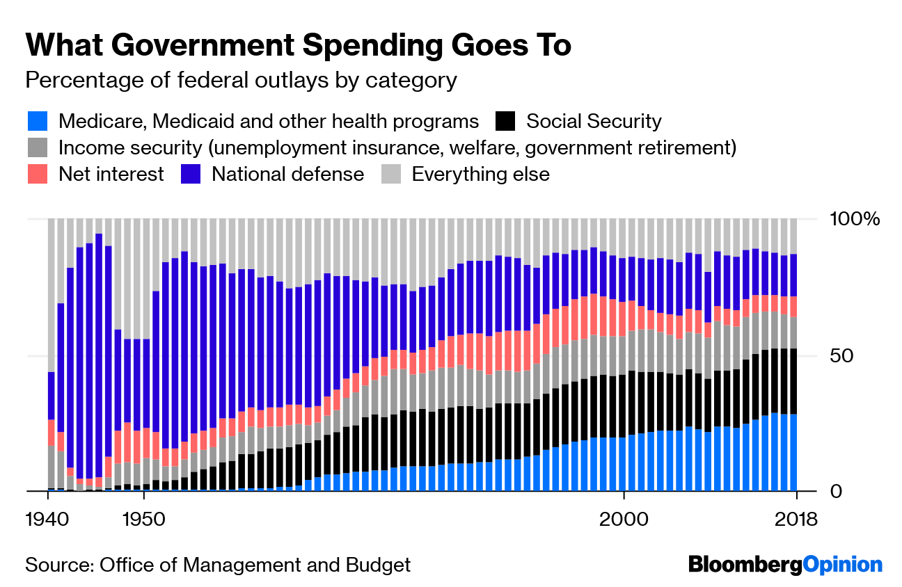 There’s been a big change through the decades in what that federal spending is going to. It used to be mostly on government activities, including the military, and investment in infrastructure and research. Now it’s almost two-thirds transfer payments, in which money is taken from one group of Americans and given to another.