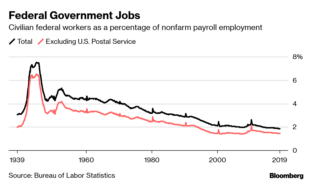 Civilian federal workers as a percentage of nonfarm payroll employment