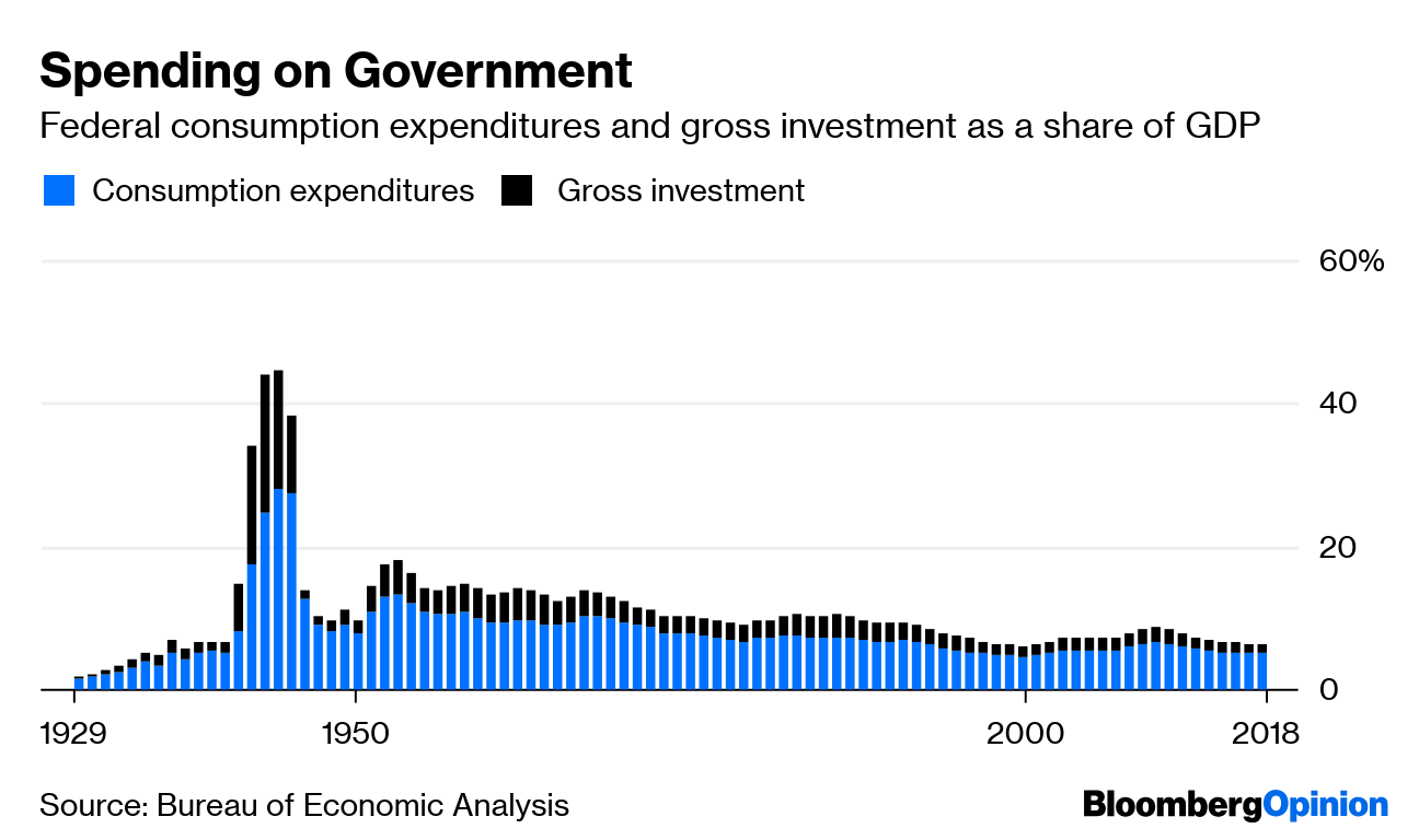 Sources: Office of Management and Budget, Congressional Budget Office, MeasuringWorth